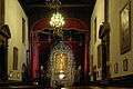 You enter through a door beneath the choir loft. The back wall is occupied by a large silver altarpiece with a central niche on the bottom of carved wood and gold cross rests with the image of Christ.