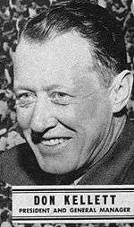 Donald Stafford "Red" Kellett (July 15, 1909 – November 3, 1970) was the President and General Manager of the Baltimore Colts franchise of the National Football League from 1953 until 1966. He also had a brief playing career in Major League Baseball as an infielder for the Boston Red Sox.