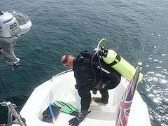 - Volunteer diver preparing for a survey dive from the Reef Dragon