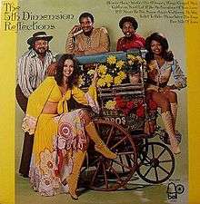 Reflections is the seventh album by American pop group The 5th Dimension, released in 1971. This album is a compilation of songs from while the band was recording for Soul City Records. It includes 4 songs that were originally released as A-side singles, although only 1 was a Top 20 hit (California Soul, #25; Blowin' Away, #21; Carpet Man, #29; Workin' On a Groovy Thing, #20). Tellingly, Bell Records released Greatest Hits on Earth the following year, which would include The 5th Dimension's biggest hits from both current label Bell Records and prior label Soul City Records.