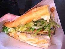 In Cape Town, the Gatsby, a baguette filled with meat (often bologna sausage), salad, cheese, and chips is sold as street food. It is said to have originated from a single restaurant.[16]