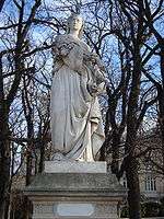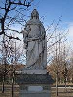 The Queens of France and Famous Women (Reines de France et Femmes illustres) is a group of sculptures in the Jardin du Luxembourg in Paris. It consists of 20 marble sculptures arranged around a large pond in front of the Palais du Luxembourg. Louis-Philippe I chose the women to be portrayed and most of the sculptures were commissioned around 1843, for around 12,000 francs each, and generally exhibited in the Paris Salons of 1847 or 1848.[1]