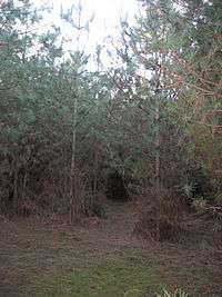 After daybreak on the morning of 26 December, servicemen returned to a small clearing near the eastern edge of the forest and found three small impressions in a triangular pattern, as well as burn marks and broken branches on nearby trees. At 10.30 a.m. the local police were called out again, this time to see the impressions on the ground, which they thought could have been made by an animal.[7][8] Georgina Bruni, in her book You Can't Tell the People, published a photograph of the supposed landing site taken on the morning after the first sighting.[9][10]