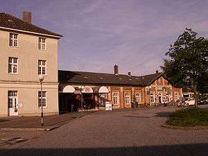 Rendsburg station is located in the city of Rendsburg in the German state of Schleswig-Holstein and is at the junction of the Neumünster–Flensburg and Rendsburg Kiel lines. It is currently operated by Deutsche Bahn, which classifies it as a category 4 station.[1] There used to be a direct line from Rendsburg to Husum via Erfde, as distinct from the current route via Jübek. A short section of the Erfde line is still used for the carriage of freight.