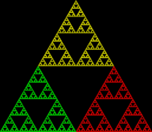 Because fractals are self-similar on smaller and smaller scales, many are also self-tiling and are therefore rep-tiles. For example, the Sierpinski triangle is rep-3, tiled with three copies of itself, and the Sierpinski carpet is rep-8, tiled with eight copies of itself.