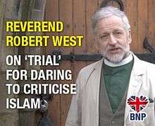 Today, West is not an active minister of any mainstream Christian organization, and his credentials remain ambiguous.[1] Despite this, West has been described as the BNP's religious affairs spokesman.[2]