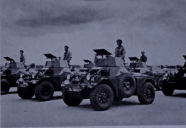 Although maligned by age and further deteriorating as a result of hard use and the difficulty in obtaining spares from the United Kingdom, Ferrets continued to be employed for counter-insurgency operations and protective duties.[5] Equipped with a single heavy machine gun, Browning medium machine guns, or a 20mm Hispano-Suiza HS.820 anti-aircraft gun, they were retrofitted with new motors and larger fuel tanks.[3] RhACR units also used MAP-45 and MAP-75 armoured personnel carriers, which, although lightly armed and armoured, provided excellent protection for their embarked infantry sections against land mines. Local manufacturers either converted an older chassis into a MAP or created an entirely new one, installing engines stripped from a menagerie of imported commercial vehicles.[5]