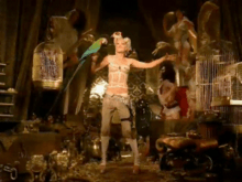 The music video for "Rich Girl" was directed by David LaChapelle and features a pirate theme. The video, inspired by an early-1980s Vivienne Westwood advertising campaign, opens with four Japanese schoolgirls playing with a toy pirate ship and two Bratz dolls of Stefani and Eve, while the girls discuss what they would do if they were a "rich girl". The video features several sequences. Stefani is first shown below the deck of a pirate ship, dancing on a table and singing to the song. She is surrounded by pirates and wenches and is soon joined by Eve, wearing an eyepatch. In the surreal style of LaChapelle, the pirate crew has distorted features, and a leaked casting call commented, "I need the freaks on this one."[40] Above deck Stefani, the Harajuku Girls, Eve, and more pirates dance on the deck and rigging. Stefani is also seen dancing with the Harajuku Girls in a treasure trove, often carrying a sword, and swinging from an anchor. When the girls dunk the toy ship in a fish tank, the galleon engages in cannon fire, causing Stefani and the pirates to fall all over the ship, and Stefani and the Harajuku Girls are soon shipwrecked.