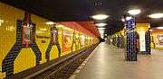 A short-distance train from Deutsche Oper served the station until it was finally closed and demolished in 1970. The new Richard-Wagner-Platz station opened on 28 April 1978 with the extension of the U7 line from Fehrbelliner Platz. It features several Byzantine style mosaics of medieval historic figures, the decoration from a former hotel near Potsdamer Platz that had been demolished in 1975. As the old tunnel has been preserved there is still a direct connection to the U2 at Deutsche Oper, used solely for maintenance purposes. The next station is Bismarckstraße (change here for U2)