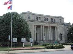 The Richmond County Courthouse is a historic courthouse located at Rockingham, Richmond County, North Carolina. It was designed by Charles Christian Hook and built in 1922-1923. It is a Renaissance Revival style ashlar veneer building that consists of a three-story central pavilion flanked by two-story wings. It features a hexastyle in antis portico.[2]