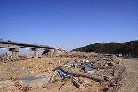 - "JR気仙沼線 【前面展望 4】 本吉⇒歌津" (video). YouTube.com. Retrieved 2011-04-26. video of a train trip from Motoyoshi Station to Utatsu Station in 2009, passing through Rikuzen-Koizumi Station, Kurauchi Station, and Rikuzen-Minato Station at around 02:35, 03:55, 05:17 minutes, respectively, without stopping. Satellite photos (e.g., in Google Maps) showed that large sections of track and railway bridges were severely affected or washed away by the 2011 tsunami. Motoyoshi Station was undamaged, Rikuzen-Koizumi Station was destroyed, Kurauchi Station was damaged, and Rikuzen-Minato Station was destroyed.