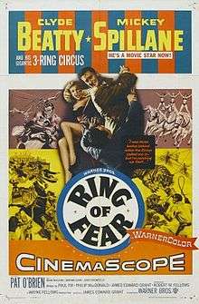 Ring of Fear is a 1954 Film Noir film starring Clyde Beatty and Mickey Spillane as themselves. With a deranged killer on the loose in his circus, lion tamer Beatty calls in mystery writer Spillane to solve the case.