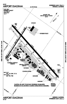 Riverside Municipal Airport (Riverside Arlington Airport, decades ago) (IATA: RAL, ICAO: KRAL, FAA LID: RAL), is four miles (6 km) southwest of downtown Riverside, the county seat of Riverside County, California.[1]