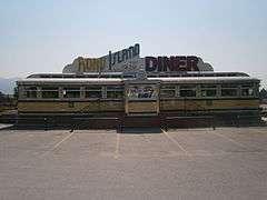 After construction, it was displayed on exhibition at the 1939 World's Fair in New York.[2] After the Fair, It was sold to Al McDermott who had it towed it to Fall River, Massachusetts where it operated for 14 years. In 1953, it was sold to Greek immigrant Tommy Borodemos, who had it transported down the turnpike to Middletown, Rhode Island, where it operated for 4 generations as Tommy's Deluxe Diner.[3] It closed its doors in May 2006 and was purchased in 2007 by Utah businessman, Keith Walker, who transported it to Oakley, Utah.[4] After a year of restoration, it was opened in July 2008. It is said to be the only pre-war, Art-deco streamline (constructed to mimic a rail dining car) diner west of the Mississippi River.