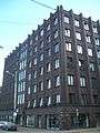Red clinker mosaique was soon copied on another of Natus' well-known building on the corner of Pärnu and Roosikrantsi street, only a few hundred meters from the City Hall. This building was inspired by Johann Friedrich Höger's Chilehaus in Hamburg. Natus has also created several functionalistic apartment buildings and private dwellings.