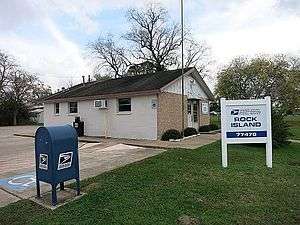 Although it is unincorporated, Rock Island has a post office, with the ZIP code of 77470.[6]