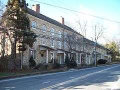 Rockland Historic District is a national historic district at Brooklandville, Baltimore County, Maryland, United States. It is located at the intersection of Old Court Road and Falls Road, where Old Court turns into Ruxton Road. There are 15 buildings in the area, including a general store, tavern, the shell of a blacksmith shop, a carriage house, several log buildings, a group of stone rowhouses, the Rockland Grist Mill, and an 18th-century dwelling. It is one of the surviving examples of a small, quiet, sylvan community of the early 19th century.[2]