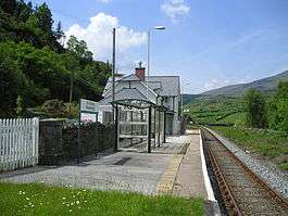Roman Bridge railway station (Welsh: Pont Rufenig) is a request stop passenger station in the Lledr Valley, Wales, on the Conwy Valley Line from Llandudno Junction to Blaenau Ffestiniog, which is operated by Arriva Trains Wales. The station building is well maintained in private occupation and the single platform station is unstaffed.