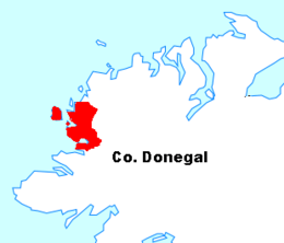 The Rosses (officially known by its Irish language name, Na Rosa;[1] in the genitive case Na Rosann) is a geographical and social region in the west of County Donegal, Ireland, with a population of over 7,000 centred on the town of Dungloe, which acts as the educational, shopping and civil centre for the area. Defined by physical boundaries in the form of rivers, as well as history and language use, the area has a distinctive identity, separate from the rest of Donegal. The extensive region lies between the parish of Gweedore to the north and the town of Glenties to the south. A large part of the Rosses is in the Gaeltacht, which means that Irish is the spoken language. The Rosses, Cloughaneely and Gweedore, known locally as "the three parishes" with 16,000 Irish speakers, together form a social and cultural region different from the rest of the county, with Gweedore serving as the main centre for socialising and industry.[2][3] Gaeltacht an Láir is another Irish-speaking area.