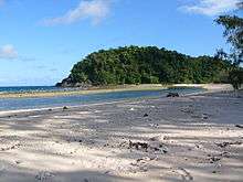 Russell Island in North Queensland is part of the Frankland Islands which form Frankland Group National Park, 30 km north-east of Babinda, and south-east of Cairns. A Queensland Parks and Wildlife Service campsite exists on the flat end of the island overlooking a beach; the other end of the island is steep with heavy jungle. Pythons are known to inhabit the island.