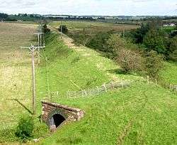 The nominal junction between the Caledonian Railway and the Glasgow and South Western Railway was at the county boundary at Loudounhill Station. The closed line was used to store hundreds of damaged railway waggons that were awaiting repair.[4]