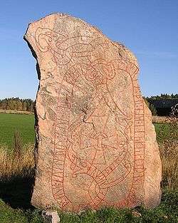 - ormar auk × uifriþ ¤ auk × hulmriþ ¤ auk × kal ¤ auk ¤ þolfr auk ¤ (s)krim(i) ¤ þu ¤ hui ¤ --(s)keni ¤ litu (r)(s)(a) × stin × aftir þolf ×[2]