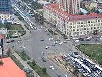 The intersection of Chinggis Khan Avenue and Peace Avenue, a major intersection, in Sukhbaatar District. | |