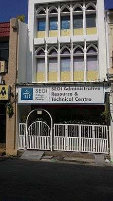 SEGi College Penang is a private college for higher education located in Georgetown, Penang. It serves as SEGi University's education hub for students in the Northern region of Malaysia. The campus is located in Greenhall, Georgetown, Penang.[1][2] SEGi College Penang offers industry-driven diploma and degree programmes in various disciplines. SEGi College Penang offers business,accounting, computing, engineering etc. courses. The college also offers programmes affiliated with University of Sunderland, University of Greenwich and Troy University. SEGi College Penang is rated as a MyQuest 5 Star college.[3][4]