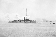 Upon commissioning, Fürst Bismarck was assigned to the German East Asia Squadron. She arrived at Tsingtao in August 1900, under the command of Konteradmiral (Rear Admiral) Curt von Prittwitz und Gaffron, and participated in the suppression of the Boxer Rebellion.[4] The ship won the Kaiser's gold challenge cup for heavy-gun marksmanship in 1901 and 1903.[9] When the new armored cruiser SMS Scharnhorst arrived at Tsingtao in 1909 to replace Fürst Bismarck as flagship of the East Asia Squadron,[10] she was ordered back to Germany. Upon arriving in Kiel in June 1909, she was decommissioned and entered a lengthy modernization that lasted until 1914.[11]