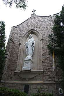 Sacred Heart Cathedral, sometimes referred to as Cathedral of the Sacred Heart, is the cathedral of the Roman Catholic Diocese of Raleigh.[2] As of 2015 the bishop seated at the cathedral is Michael Francis Burbidge.[3] When the current building was completed in 1924 as a parish church, North Carolina was the only state in the United States of America without its own Catholic diocese. Sacred Heart Cathedral is the smallest Roman Catholic cathedral in the continental United States. The cathedral is located in downtown Raleigh, North Carolina on Hillsborough Street.[4][5] In 1978 it was included as a contributing property in the Capitol Area Historic District, which is listed on the National Register of Historic Places.[6] The Cathedral also hosts the Cathedral School, formally called the Sacred Heart Cathedral School, a Catholic elementary and middle school.