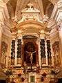 The present day Baroque sanctuary was built in the third building phase (1738 - 1781) consisting in the enlargement of the sacristy and of the choir, designed by architect Bernardo Antonio Vittone. The inside of the church has one aisle and two chapels on each side, devoted to the parents of John the Baptist -- Elizabeth and Zechariah—and to the parents of Jesus (Mary and Saint Joseph). The ceiling is a groin vault; the one over the altar is decorated with the four evangelists, painted, like the altarpieces, by local artists.[2] In 1934 the great service area in front of the church was arranged with the Hosteria (the tavern) and lodgings. In the middle there is a fountain (burnell), made in local stone.[3]