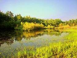 The settlement of Sadykierz is located by a post-glacial lake, home to a rare species of white water-lily.[3]