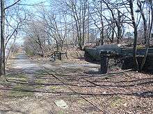 While the platforms of the station have been removed, the two stairways leading down to the former station and dock, and the retaining wall between the stairways, inscribed as "Sailors Snug Harbor" still stand today. Another retaining wall inscribed as "S. S. Harbor" and ramp stand about 700 ft (200 m) west of here.[9] The northern of the two tracks has been taken up and the right-of-way between these two points paved for recreational use.[6]