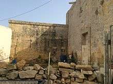 The redoubt was built on the site of a cemetery.[2] It incorporated the Chapel of St. George, which had been built in 1683 on the site of an earlier chapel.[3] Apart from being the only Hospitaller redoubt incorporating a church, St. George Redoubt is also unusual since it has a semi-circular shape, while most redoubts were pentagonal.[4] The semi-circular platform is ringed by a low parapet. The walls linking the redoubt to the church are pierced by musketry loopholes, while the doorway had a ditch and a drawbridge.