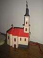 The scale-modell of the church made by László Kasza which is in the Serbian Club