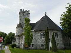 Saint Paul's Episcopal Church is a historic Episcopal church located at Watertown in Jefferson County, New York. The church was built in 1889-1891 and is Romanesque Revival–style edifice. It is a one storey, asymmetrically massed building of random course ashlar stone of light grey color. It features a three story square stone tower with a crenellated top and round battlements at the corners and square ones in the center.[2]
