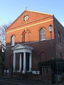Saint Thomas of Canterbury church is a Catholic church serving the population of Newport, Isle of Wight, England. It is the oldest purpose-built Catholic church, post-reformation, on the island. Because the Roman Catholic Relief Act of 1791 placed restrictions on how Catholics could worship, there is no steeple, bell, or anything else that made a building look more like a church.[1] This means the building looks quite plain on the exterior.