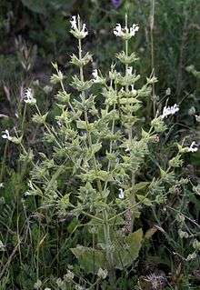 Salvia macrosiphon is a species of flowering plant in the mint family, Lamiaceae. It is native to Iraq, Iran, Pakistan, Afghanistan, Transcaucasia, and Turkey, where it grows at the edges of fields. It is a perennial herb with a white corolla and ovate nutlets. It flowers in May and fruits from June onwards. Although the plant is similar to S. spinosa, it differs in that it has narrower leaves and calyces, is less indurate and has less spiny fruiting calyces, and possesses a longer corolla tube.[1]