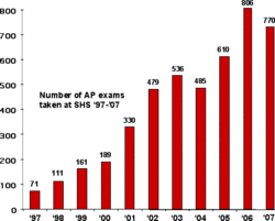 Sammamish offers Advanced Placement classes. From 2002 through 2006, Sammamish students' scores counted for over 50% of all the passing exams in AP Calculus BC for the entire state.[7]