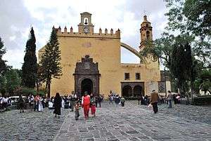 The church was in charge of various communities outside of Xochimilco proper including Santiago Tepalcatlalpan, San Lucas Xochimanca, San Mateo Pochtla, San Miguel Topilejo, San Francisco Tlalnepantla, San Salvador Cuautenco, Santa Cecilia Ahuautla, San Andrés Ocoyoacac, San Lorenzo Tlatecpan, San Martín Tiatilpan, Santa Maria Nativitas Zacapan and Santa Cruz Acalpixcan, which are now in the boroughs of Xochimilco and Tlalpan.[3] As the population adopted Christianity, they were allowed to keep a number of traditional practices to mix with Catholic rites.[1] The best known of these traditions centers on the Niñopa, an image of the Child Jesus which dates to the 16th century. It and other images of its type were promoted by the evangelists to replace a cult to a child god which was prevalent in Xochimilco at the time of the Conquest. Today, this image is cared for by a family for a year, changing houses on 2 February with this most important annual event of the borough occurring at this church.[4] [5][6]