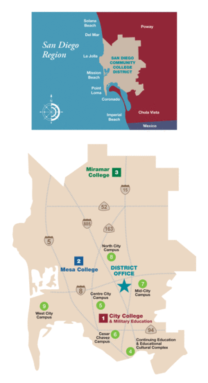 - ↑ SDCCD Board of Trustees (2010). "Annual Report to the Community 09-10" (PDF). San Diego Community College District. Retrieved 2010-11-30.