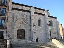Iglesia de San Nicolás de Bari is a Catholic church on Calle de Fernán González in Burgos, Spain, located next to the Camino de Santiago, in front of the cathedral. Since the Church of San Esteban was turned into a museum, it has served as the seat of the parish of San Esteban. The church was built in 1408, replacing another Romanesque temple.[1] It contains notable examples of fifteenth century Castilian Renaissance art by Simón de Colonia and his son Francisco. Also of great interest are the Gothic tombs, and the Renaissance arc by María Sáez de Oña and Fernando de Mena.[2] The church became a Bien de Interés Cultural listed building on 26 January 1917.