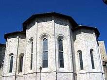 San Pietro Martire is a Gothic-style, Roman Catholic Basilica church located at piazzetta at the intersection of Via delle Torrei, Soderini, and Solestà in the town of Ascoli Piceno in the region of Marche, Italy.