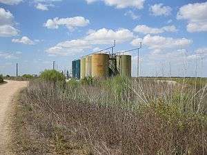 In 1905 there were 50 black students enrolled in the Sand Ridge school, which also had one teacher.[4] The first producing oil well in Wharton County was drilled in 1925 in the Boling Field near Iago. This started an oil drilling boom during which numerous fields were exploited.[5] Maps of 1936 displayed two churches, a cemetery and several homes in Sand Ridge. In the 1980s the New Colorado Tabernacle Church and another church and several homes were in the vicinity. The railroad was discontinued in 1992 and the rails removed.[4] In 2013 the Sandridge Baptist Church[6] and the adjacent San Ridge & Mt Gilead Cemetery were located at the site.[note 1]