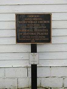 Sand Spring Presbyterian Church, Orwood, MS, USA. NRHP marker.