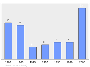 1 French Land Register data, which excludes lakes, ponds, glaciers > 1 km² (0.386 sq mi or 247 acres) and river estuaries. 2 Population without double counting: residents of multiple communes (e.g., students and military personnel) only counted once. | |