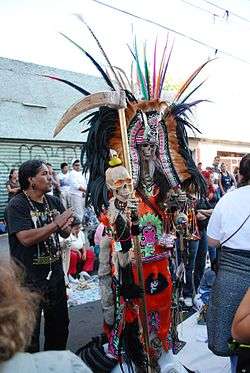 Since the pre-Columbian era Mexican culture has maintained a certain reverence towards death,[3] which can be seen in the widespread commemoration of the Day of the Dead.[4] Elements of that celebration include the use of skeletons to remind people of their mortality.[5] The worship of Santa Muerte is condemned by the Catholic Church in Mexico as invalid, but it is firmly entrenched among an increasing percentage of Mexican culture.[6][7]