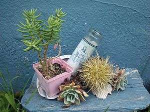 Shrines can also be found in the back of all kinds of stores and gas stations. As veneration of Santa Muerte becomes more accepted, stores specializing in religious articles, such as botánicas, are carrying more and more paraphernalia related to the cult. Historian R. Andrew Chesnut has discovered that many botanicas in both Mexico and the U.S. are kept in business by sales of Santa Muerte paraphernalia, with numerous shops earning up to half of their profits on Santa Muerte items.[11] This is true even of stores in very well known locations such as Pasaje Catedral behind the Mexico City Cathedral, which is mostly dedicated to store selling Catholic liturgical items. Her image is a staple in esoterica shops.[10]