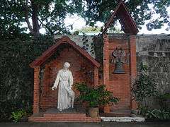 Reconstruction efforts were done but were halted in 1688 because the place was declared unfit for habitation. Construction resumed in 1696 under the supervision of Fr. Francisco de Mondejar and through the generosity of a pious person, Don Tomas de Endaya, and the stone church was completed in 1699. The convent was also reconstructed alongside the church. It was also during this time when the baroque altar was installed.[1] The new stone church was dedicated to then newly Blessed Pedro Bautista and to his companion martyrs who were beatified by Pope Urban VIII on September 14, 1627. They were canonized after almost a century and half on June 8, 1862 by Pope Pius IX.[3]