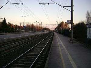 Saunakallio railway station (Finnish: Saunakallion rautatieasema, Swedish: Saunakallio järnvägsstation) is a Helsinki commuter rail station in the town of Järvenpää, Finland, 39 km (24.5 mi) north from the Helsinki Central railway station.